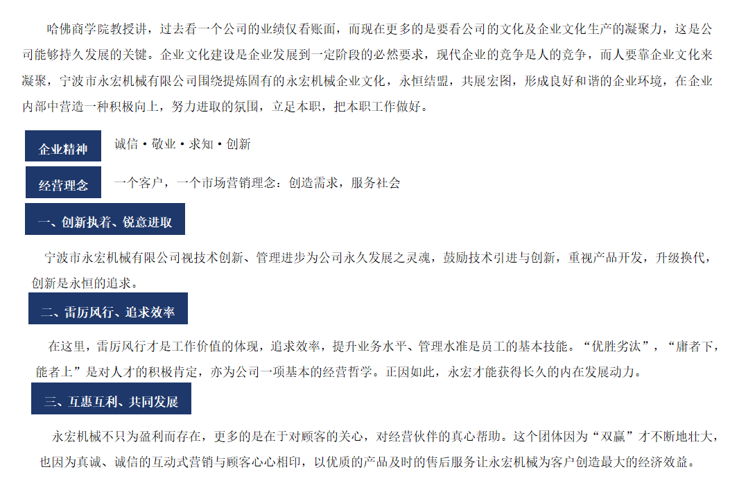 公司位于浙江省寧波市洪塘經(jīng)濟(jì)開(kāi)發(fā)區(qū),地理環(huán)境優(yōu)越,交通便捷,公司成立以來(lái),本著以科技創(chuàng)新進(jìn)步為導(dǎo)向,以“用戶是上帝”,“質(zhì)量為生命”的宗旨,不斷引進(jìn)國(guó)內(nèi)外先進(jìn)技術(shù)及加工設(shè)備,完善提高自身產(chǎn)品,具有完善售后服務(wù)。在國(guó)內(nèi)外廣大用戶中享有崇高的信譽(yù)。